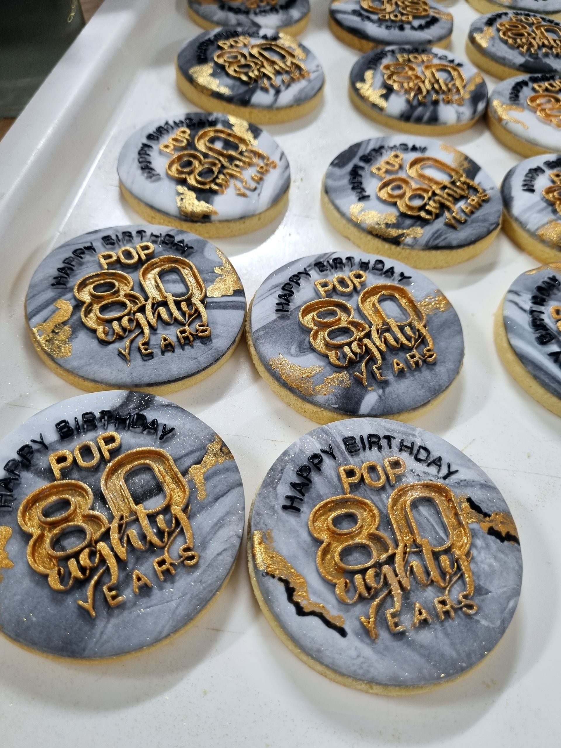 Our designer cookies are made in-house and can be tailored to your chosen theme. We design our own cutters and stamps to give you your very own bespoke design. Packaged individually (min 25 per order) from $5 per cookie.