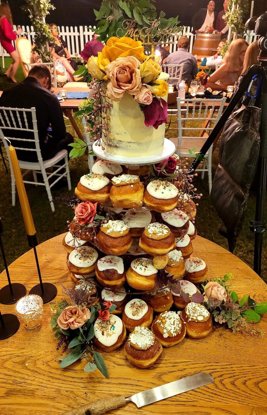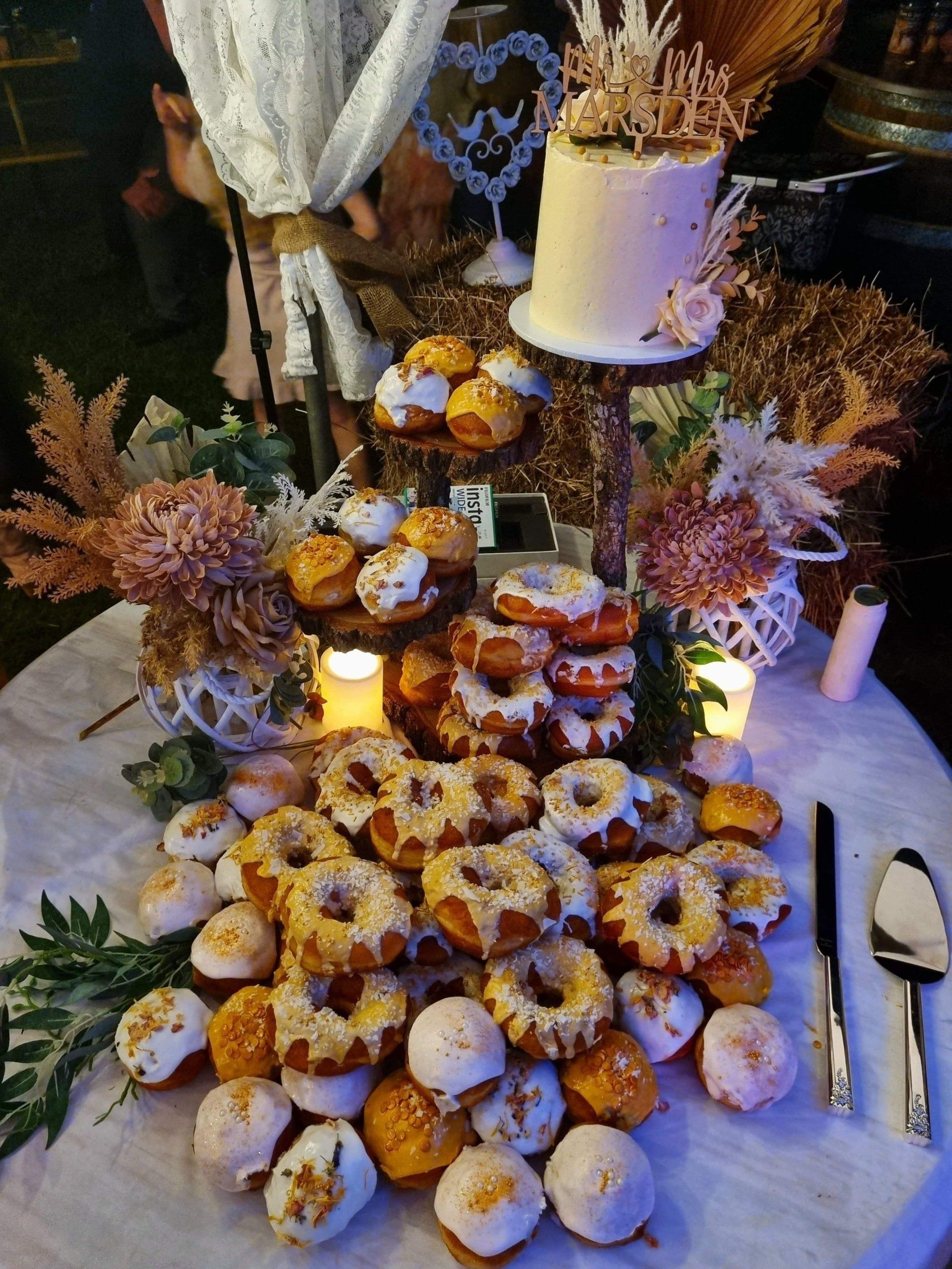 ADD A TOUCH OF FUN AND FESTIVITY TO YOUR WEDDING, WITH OUR DONUT TOWERS OR DESIGNER DONUTS