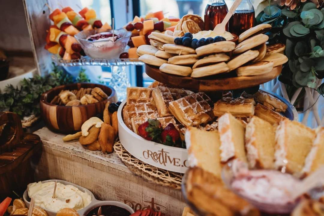 Vegetarian, Beef or Chicken Rice Paper Rolls (GF); Vegetarian, Beef or Chicken Nori Rolls (GF); Mixed Finger Sandwiches; Mixed Wraps; Pulled Chicken Sliders; Pulled Pork Sliders; Pizza Scrolls; Frittatta (GF); Mini Quiches; Mini Pies; Mini Sausage Rolls; Sweet Tartlets; Small Cakes; Mini Donuts; Brownies; Cupcakes; Scones & Pikelets & Condiments