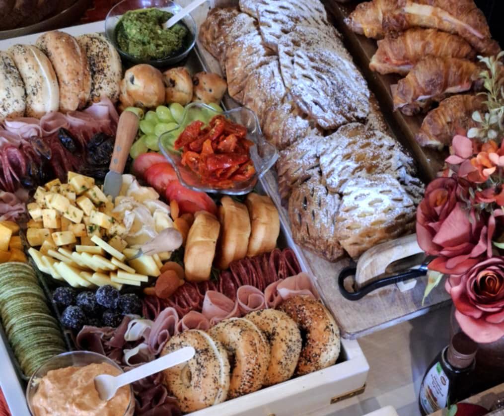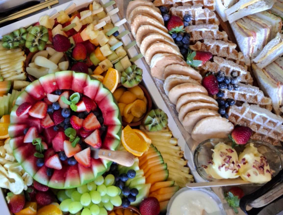 Our beautifully styled breakfast/brunch graze includes a selection of cured meats, cheeses, dips, crackers, fruits and breads, as well as all your breakfast favourites including: a waffle and pancake station, yoghurt & muesli, sweet & savour pastries and sandwiches tailored to your needs.
