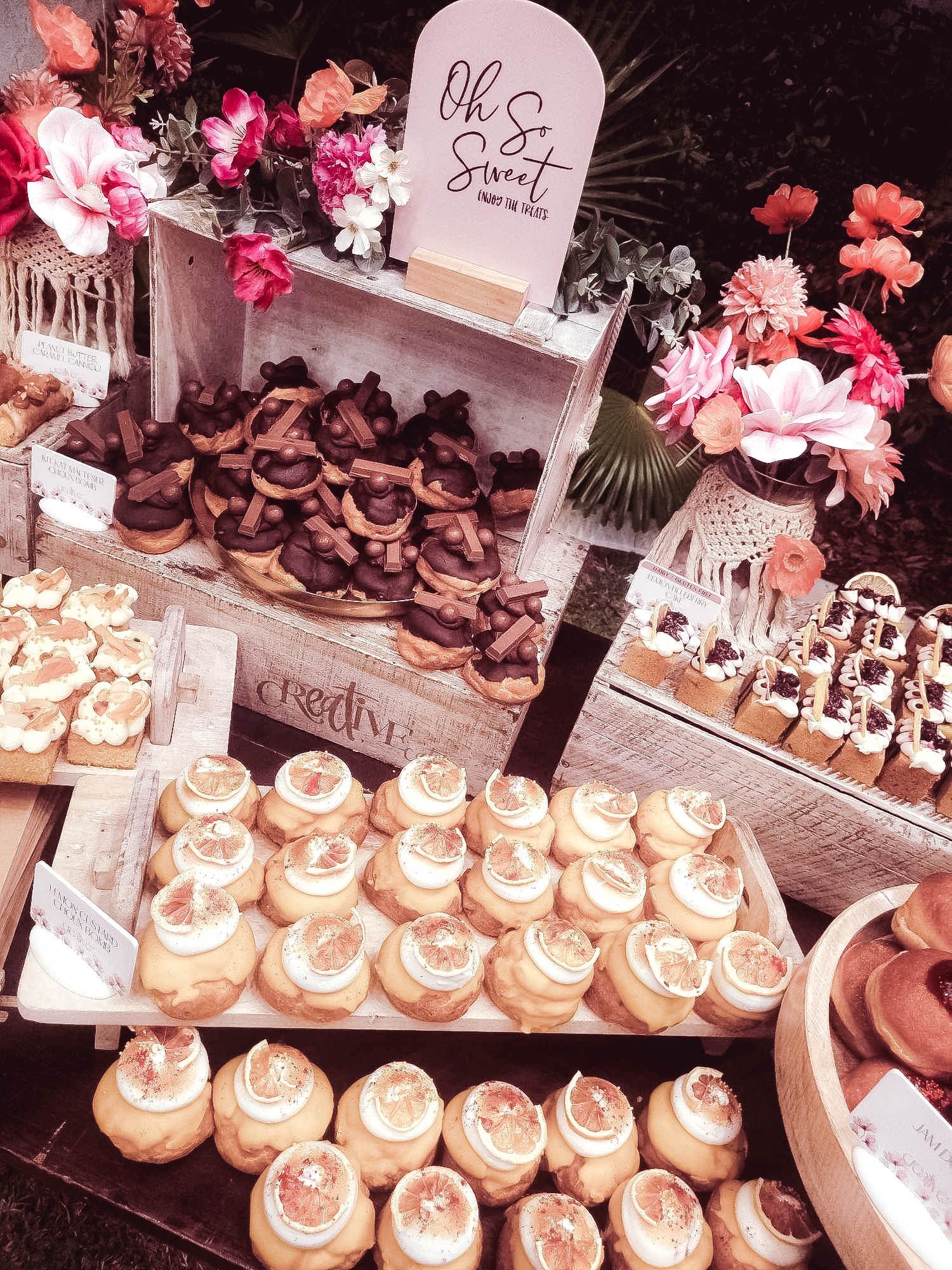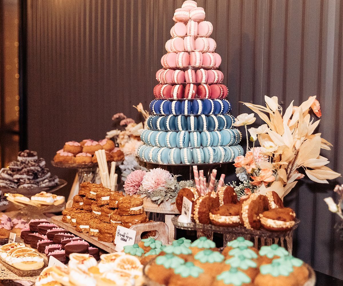 Our Dessert Bars are more than just sweet treats — they’re a stunning visual centrepiece, thoughtfully styled to match the colour palette and theme of your celebration.