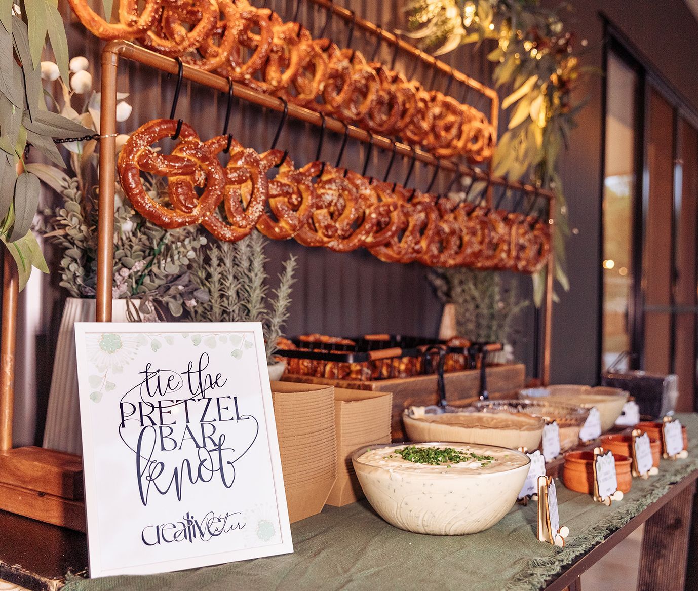 Add a playful, and oh-so-delicious touch to your celebration with our Giant Pretzel Bar.